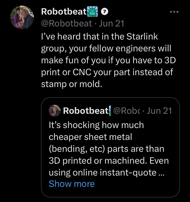 On almost any metric…speed, volume, price… the older methods of manufacture are better. At least SpaceX seems to get it, even if A16Z does not.